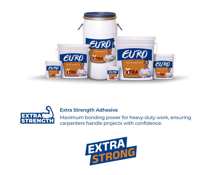 EURO XTRA is a high-performance wood adhesive specially formulated for premium carpentry work. With its superior grip and long-lasting bond, it ensures excellent adhesion for decorative wood surfaces and heavy-duty joints. Ideal for craftsmen, interior designers, and furniture makers who demand quality and precision.